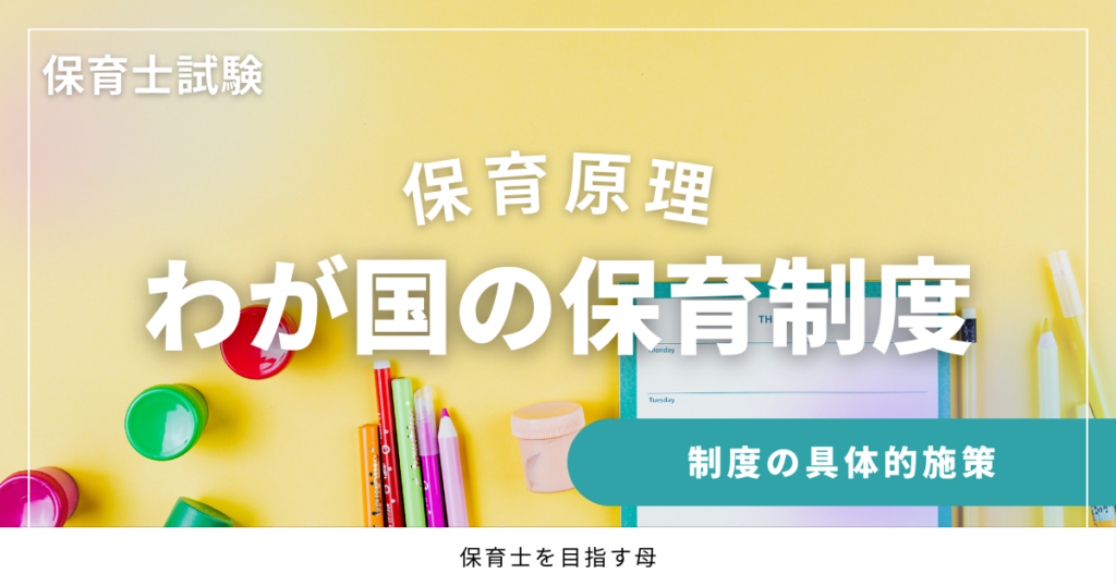 これは保育士試験に向けて、独学で勉強した内容をまとめた記事です この記事は前回の記事の続きです。前回の記事はこちら 3.子ども・子育て支援制度の具体的施策 2015年4月から子ども・子育て支援(新)制度が施行され、それまでは保育所や幼稚園など... -